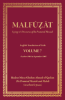 Malfuzat refers to the holy and insightful words of the Founder of the Ahmadiyya Muslim Community, Mirza Ghulam Ahmad of Qadian, the Promised Messiah and Mahdi, on whom be peace, which he expressed verbally from time to time in his pure and holy gatherings or before congregations at the Annual Convention, for the purification of his followers and for their spiritual and moral training, thus enabling them to forge a living relationship with God; to teach the knowledge and wisdom of the Holy Quran; to revive the religion of Islam and to establish the shariah of Muhammad(sa).
