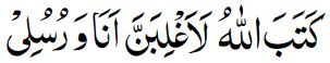 Translation: Surely, nothing shall befall us save that which God has decreed for us. He is our Lord and our Master. And only in Him should the believers put their trust.