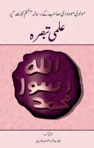 مولوی ابوالاعلیٰ مودودی نے پاکستان کی صوبائی اور قومی اسمبلی کے انتخابات کے موقعہ پر جماعت احمدیہ کے خلاف اپنا رسالہ ’’ختم نبوت‘‘ ہزار ہا کی تعداد میں شائع کروا کر جماعت احمدیہ مسلمہ پر ختم نبوت کے منکر ہونے کا جھوٹا الزام لگایا تھا اور مسلمانوں میں نفرت کی آگ مزید بڑھانے کا سامان کیا تھا۔ اس پر قاضی محمد نذیر صاحب فاضل، ناظر اشاعت لٹریچر و تصنیف صدر انجمن احمدیہ پاکستان نے ایک علمی اور تحقیقی رد تیار کیا تھا جسے مذکورہ بالا الیکشن کے گزر جانے کے بعد طبع کیا گیا تھا تا جماعت کے علمی اور مذہبی لٹریچر کی حیثیت پر کوئی سیاسی شائبہ یا الزام نہ آئے۔