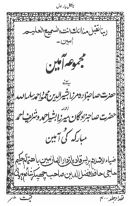 ’مجموعہ آمین‘ سیدنا حضرت میرزا بشیرالدین محمود احمدؓ، حضرت مرزا بشیر احمدؓ، حضرت مرزا شریف احمدؓ اور حضرت نواب مبارکہ بیگمؓ کی ختم قرآن شریف کی مبارک تقاریب کے موقع پر جو دو دعائیہ نظمیں حضرت مسیح موعود علیہ السلام نے لکھیں ان کا مجموعہ ہے۔