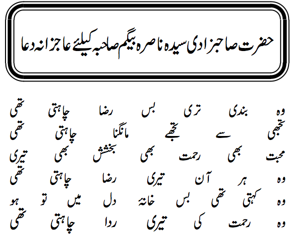 حضرت صاحبزادی سیدہ ناصرہ بیگم صاحبہ کیلئے عاجزانہ دعا